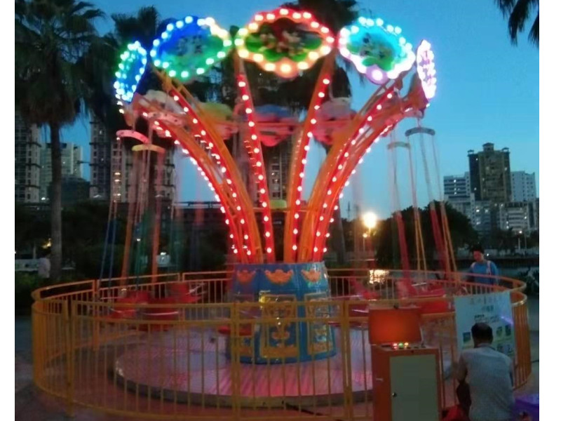 迷你飛椅是種新型的旋轉(zhuǎn)式波浪起伏性的兒童游樂設(shè)備。吊臂下連著吊椅,設(shè)備運(yùn)轉(zhuǎn)時(shí)游客猶如在空中飛翔,飄蕩,海闊天空,驚心動(dòng)魄。它柔和了絢麗的燈飾和七彩繽紛的圖案設(shè)計(jì),造型華麗,使游客留戀忘返,激發(fā)游客的參與感,本設(shè)備老少皆宜,特別對(duì)青少年兒童更具有強(qiáng)烈的吸引力。